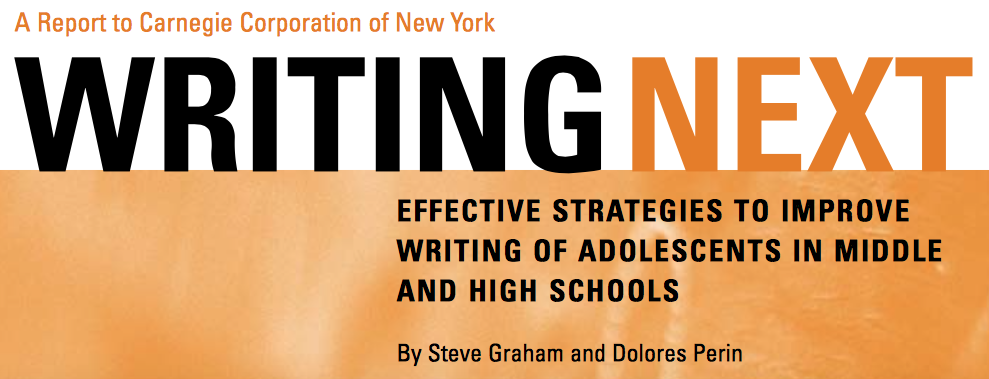 Graham, S. & Perin, D. (2007). Writing Next: Effective strategies to improve writing of adolescents in middle and high schools. New York: Carnegie Corporation.