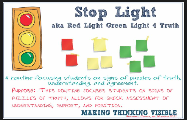 When reading, viewing or listening to materials, consider: What are the read lights? (What things stop you in your tracks as a reader/listener/observer because you doubt their truth or accuracy?); What are the yellow lights here? (What things slow you down a bit, give you pause, and make you wonder if they are true and accurate or not?).