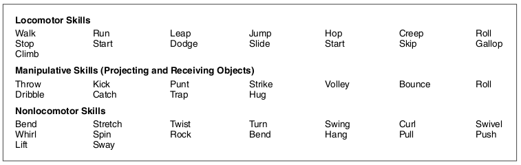 Children need to be able to use all the fundamental motor skills and perceptual-motor competencies together to produce movements of different qualities. As children build their ideas and meanings, they must also learn the vocabulary of movement.