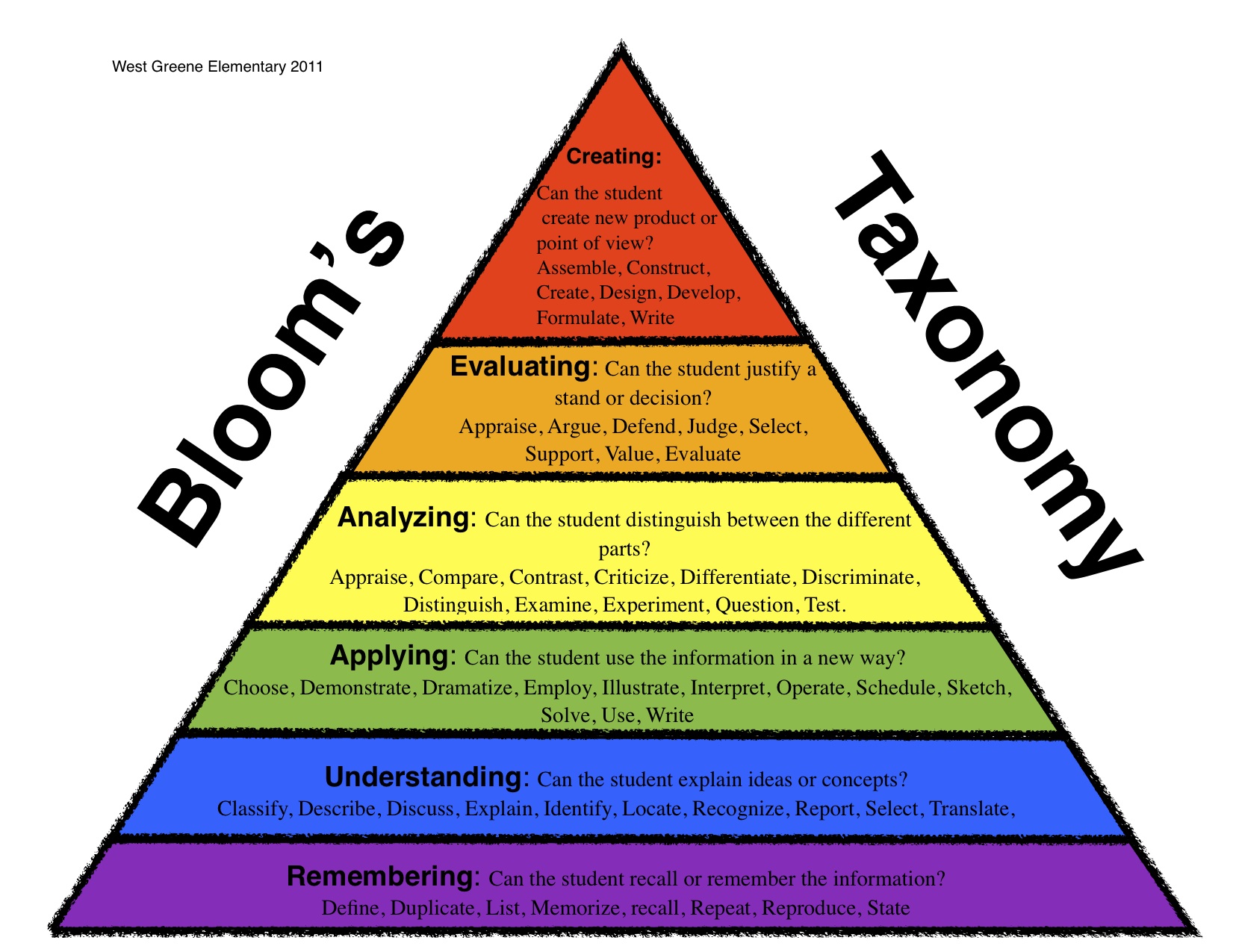 This is a classification system which can be used to define and distinguish different levels of human cognition in a hierarchal model. Consisting of six levels, three of which are lower levels (knowledge, comprehension and application) and three are higher order thinking (analysis, synthesis and evaluation).